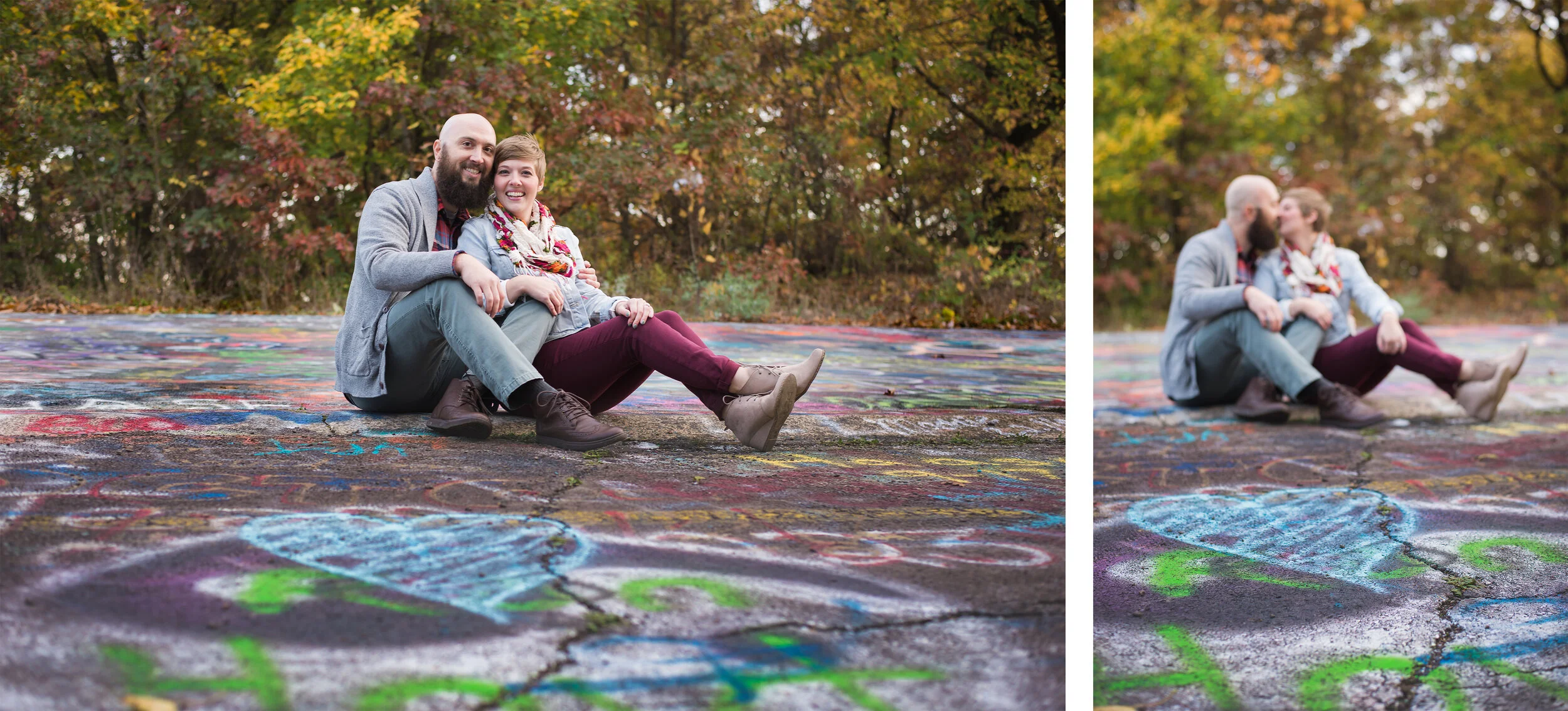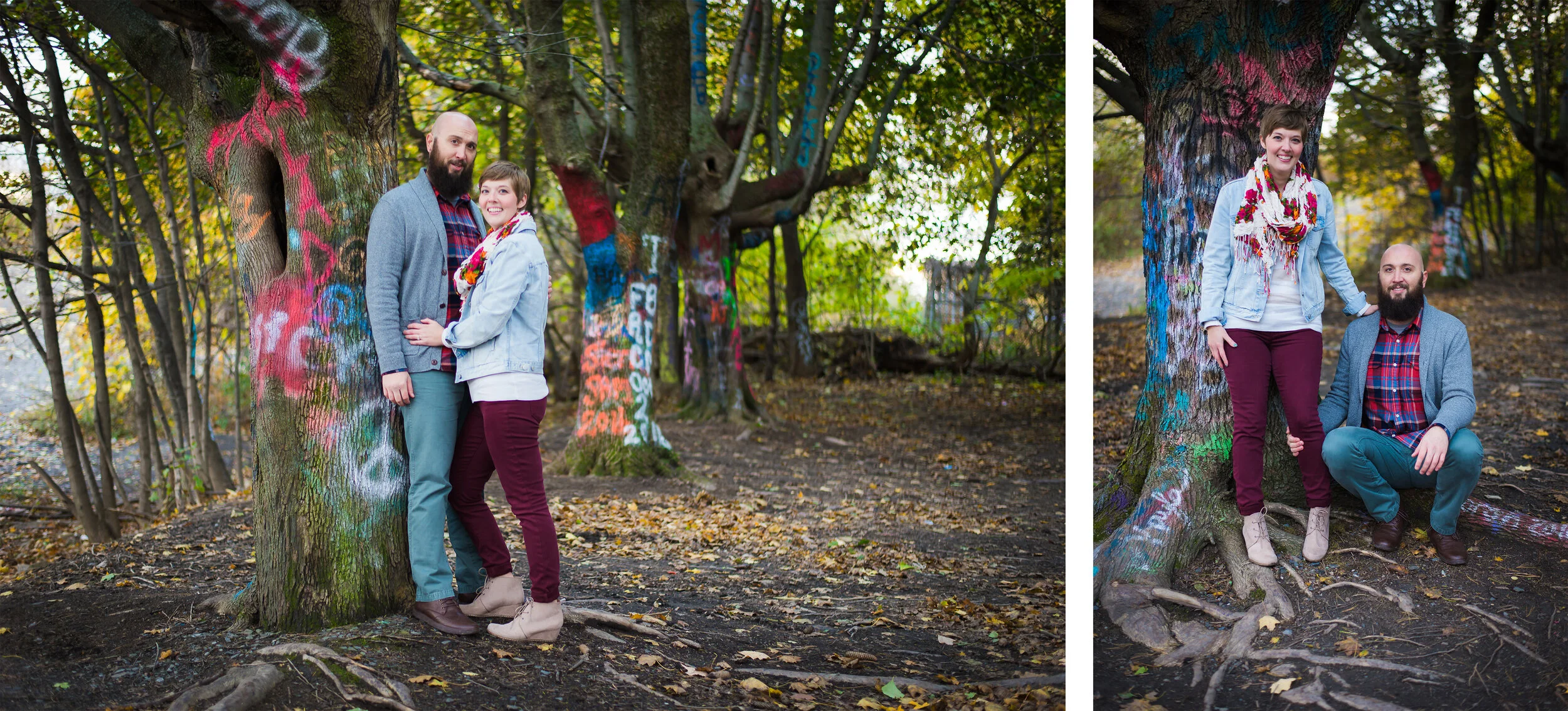 Jolie and Justin just celebrated 10 years together! What better way to celebrate than with an engagement photoshoot in an anything but ordinary place and a mini session with their doggies Popcorn and Ludo. From Graffiti lined highways in Centralia, underground mine fires, and a mountain top sunset it was one exciting and fun day with a gorgeous and fun couple, and some super cute puppies.